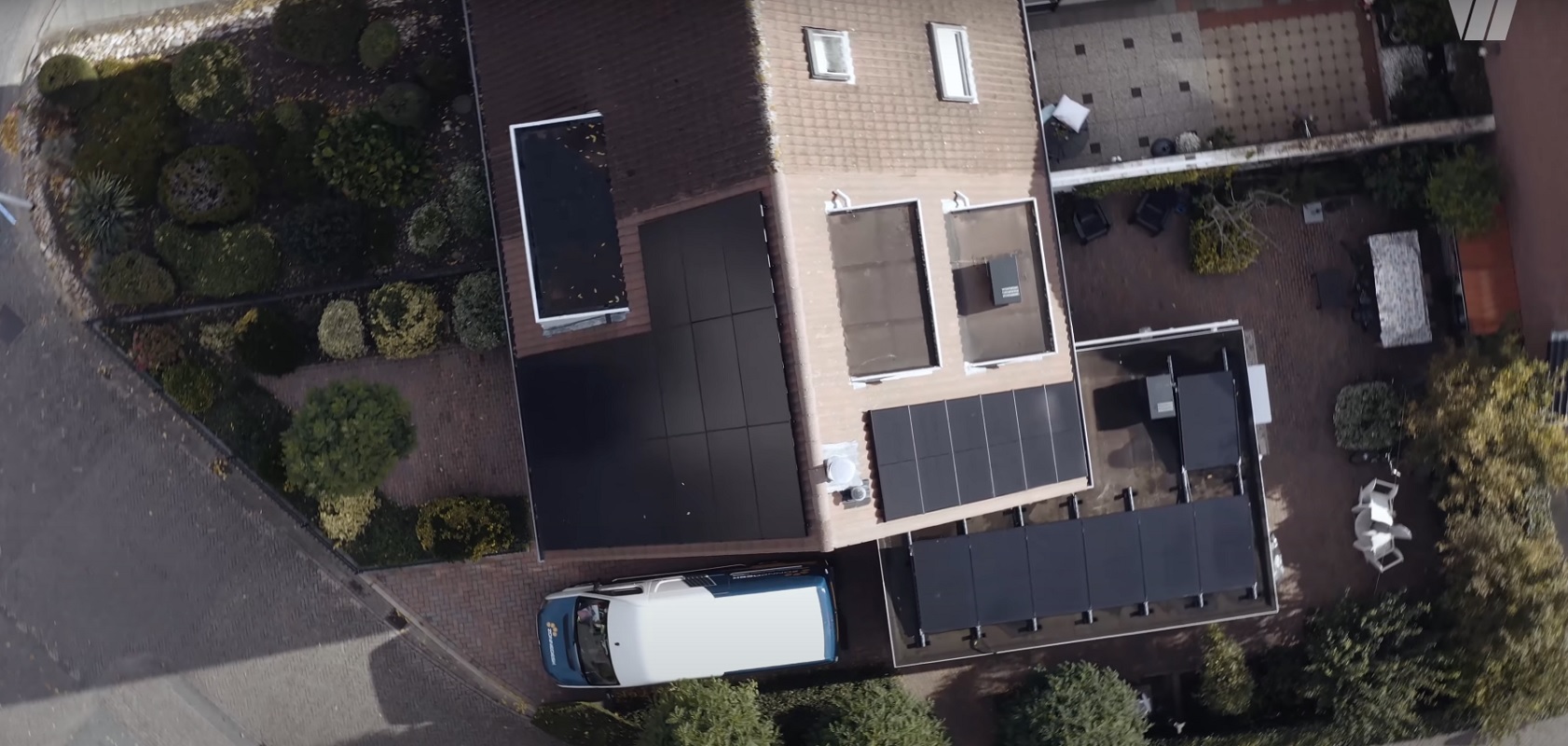 ‘In dit project komen heel veel facetten samen’, vult Han Pot van Zonnedesk aan. ‘Er is een warmtepomp geplaatst en het dak is optimaal benut om de maximale hoeveelheid zonne-energie te oogsten – aan de voorkant, achterkant en op het platte dak aan de zijkant van het huis zijn zonnepanelen geïnstalleerd. Bovendien is er een batterijsysteem geplaatst in combinatie met een back-upbox. Deze zorgt ervoor dat als de stroom vanaf de netkant wegvalt, er overgeschakeld kan worden op stroom uit de thuisbatterij. Met andere woorden: als we die back-upbox niet geplaatst zouden hebben en het stroomnet zou wegvallen, dan zou de thuisbatterij niet werken. De back-up- box zorgt er dus voor dat de thuisbatterij als een “aggregaat” kan functioneren. De bewoners kunnen tijdens een stroomstoring toch hun lampen laten branden of een eitje koken op hun inductiekookplaat…’