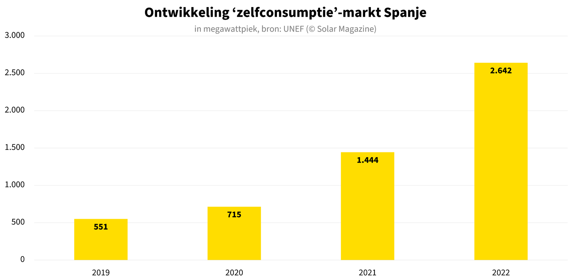 Het kalenderjaar 2022 gaat voor Spanje de boeken in als een recordjaar. Het land verwelkomde bijna 7 gigawattpiek aan zonnepanelen: 4.281 megawattpiek aan utiliteitsprojecten en 2.649 gigawattpiek aan ‘zelfconsumptie’-projecten. Daarmee zit het Europees koploper Duitsland – dat vorig jaar 7,2 gigawattpiek zonnepanelen verwelkomde – op de hielen.
