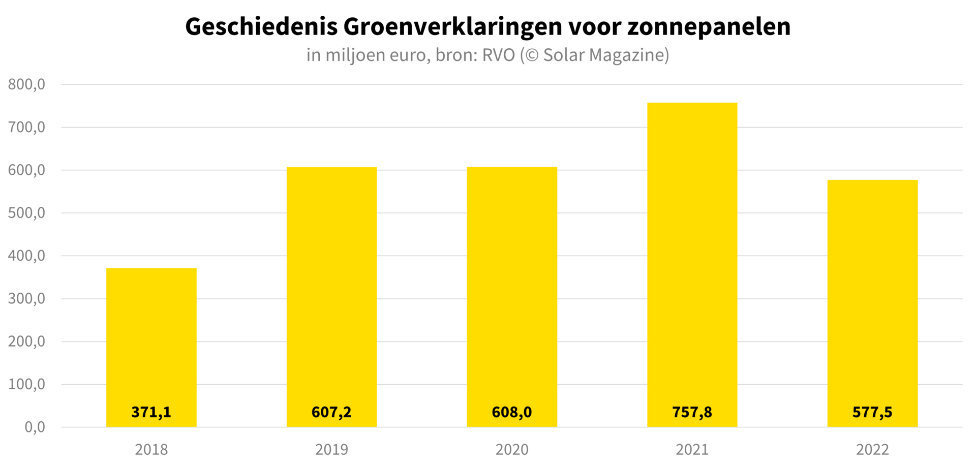 In onderstaande grafiek is de historische ontwikkeling van de aanvragen van groenverklaringen voor zonnepanelen te zien.
