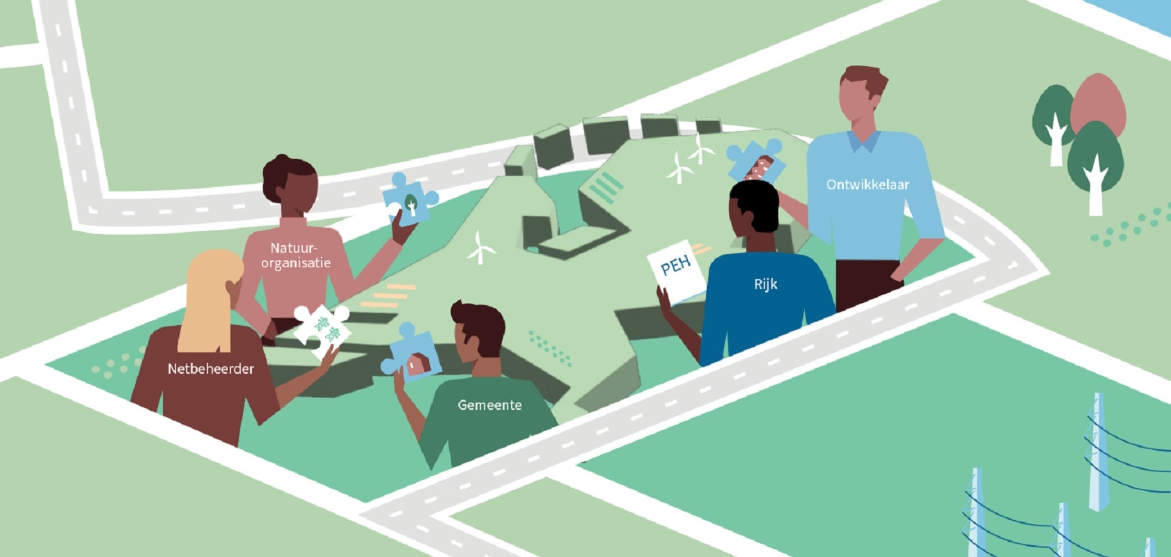 In het PEH onderschrijft het kabinet dat een systeem met duurzame energie meer ruimte vraagt dan een fossiel systeem. Met het PEH heeft het kabinet daarom ook concreet in kaart gebracht hoeveel ruimte er nodig is voor het toekomstige energiesysteem, waar specifieke onderdelen zoals elektrolysers en batterijen zouden kunnen, en hoe dit slim in te delen is.