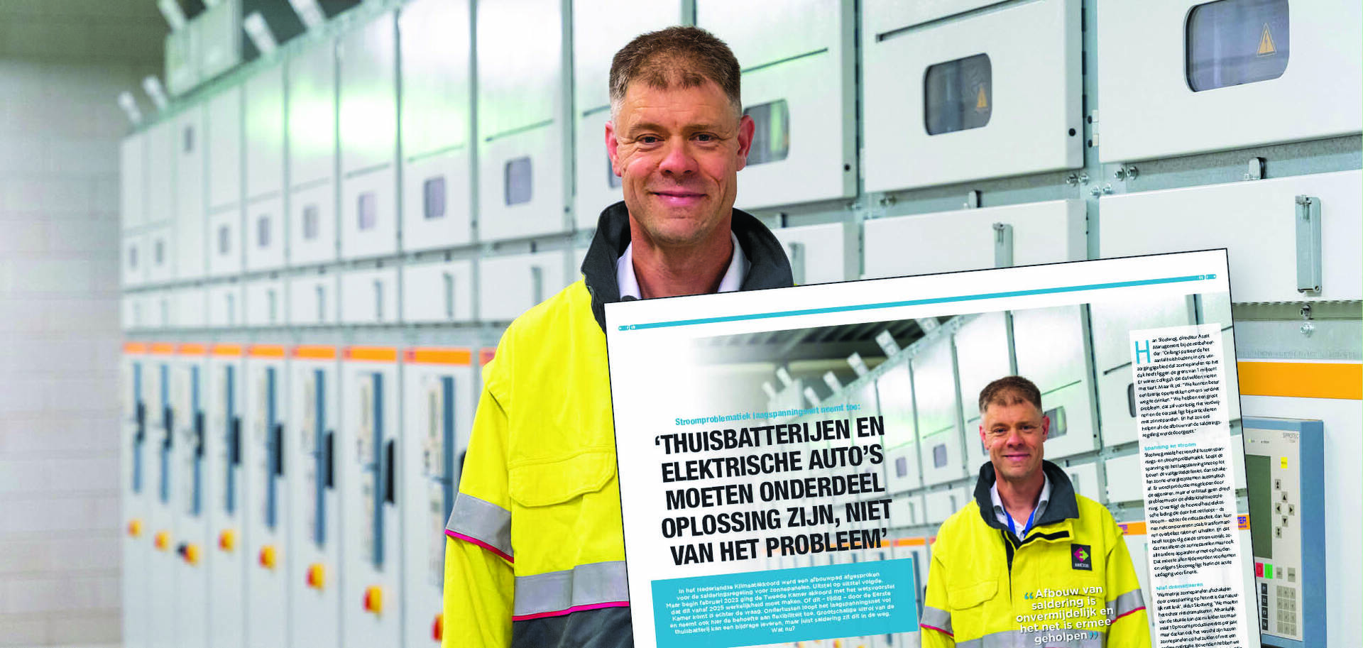 Han Slootweg, directeur Asset Management bij de netbeheerder: ‘Onlangs passeerde het aantal huishoudens in ons verzorgingsgebied dat zonnepanelen op het dak heeft liggen de grens van 1 miljoen! Er waren collega’s die dat wilden vieren met taart. Maar ik zei: “We kunnen beter een biertje opentrekken om ons verdriet weg te drinken.” We hebben een groot probleem, dat zal voorlopig niet verdwijnen en de oorzaak ligt bij particulieren met zonnepanelen. En het zou ons helpen als de afbouw van de salderingsregeling wordt doorgezet.’