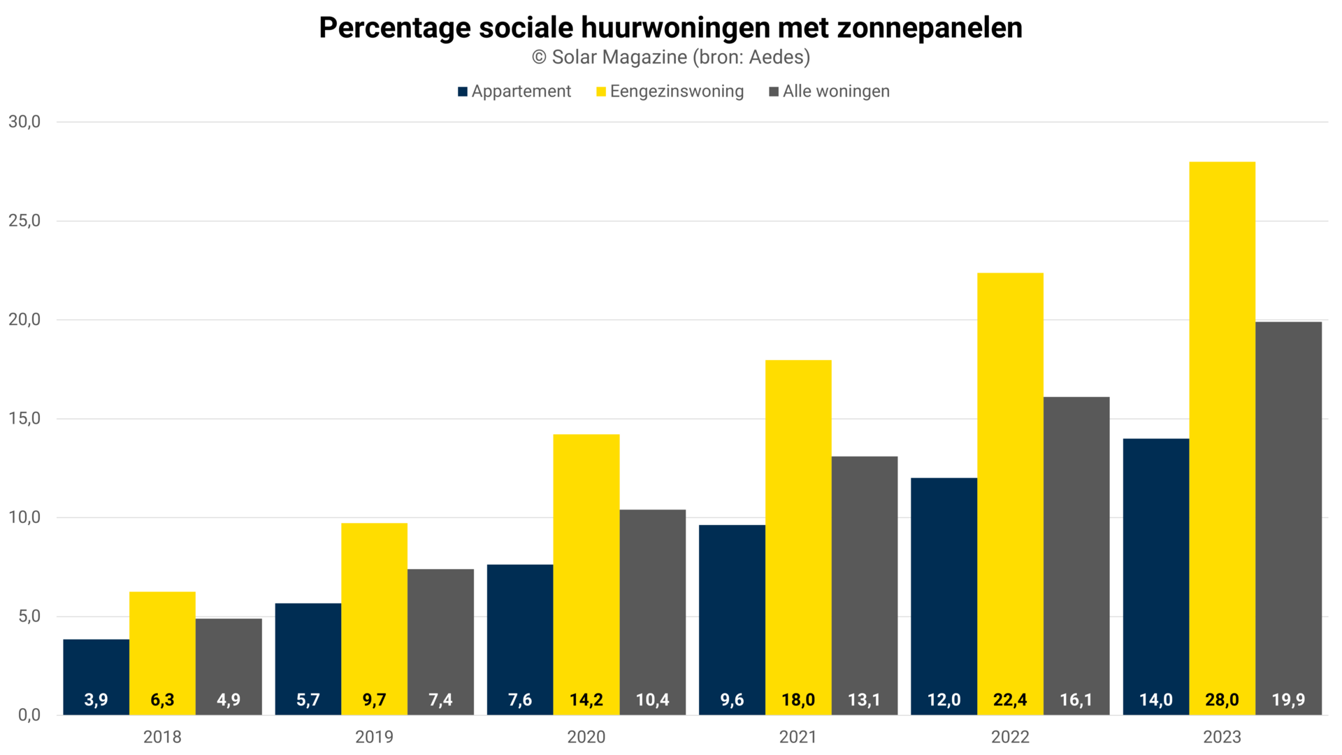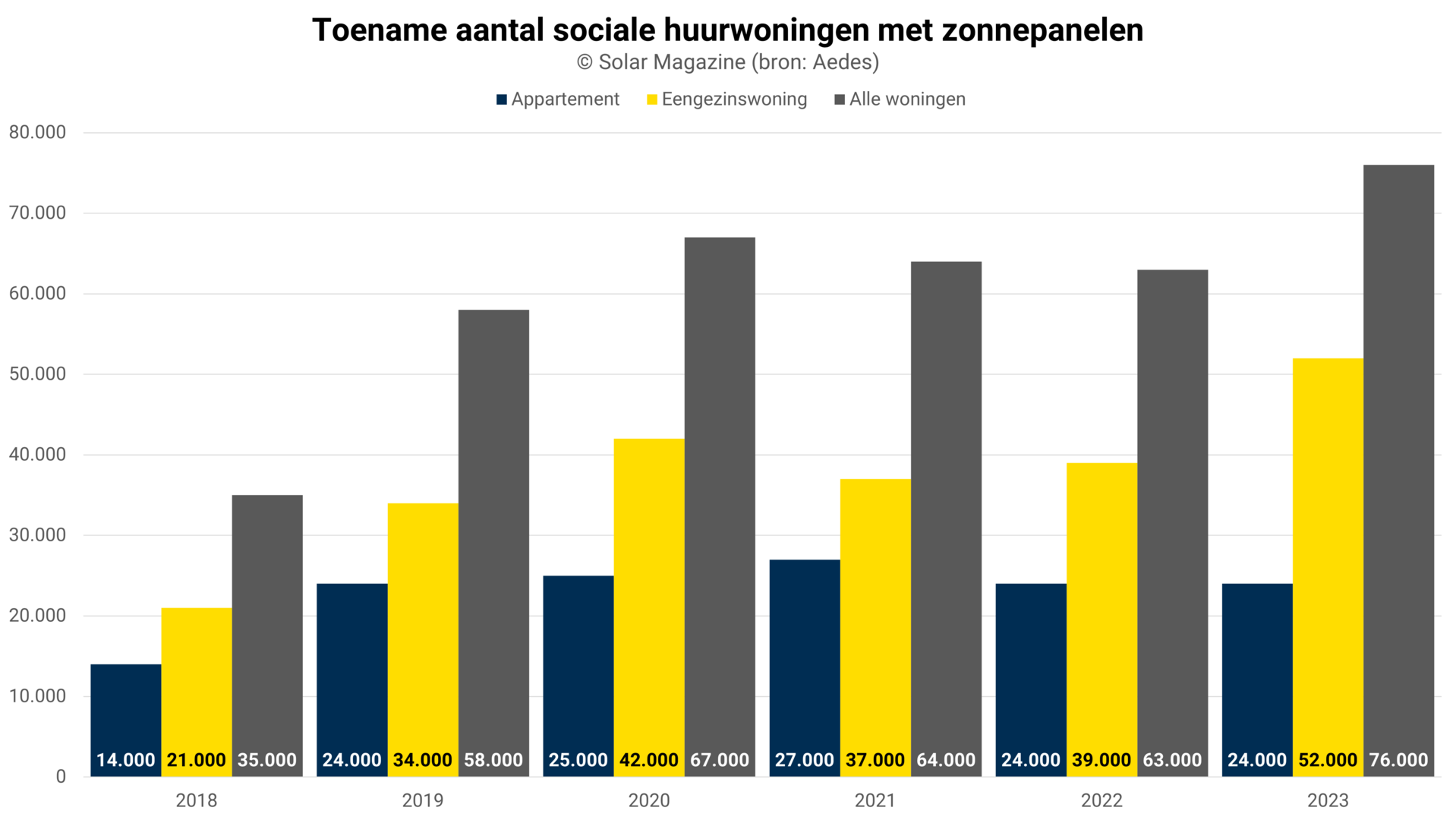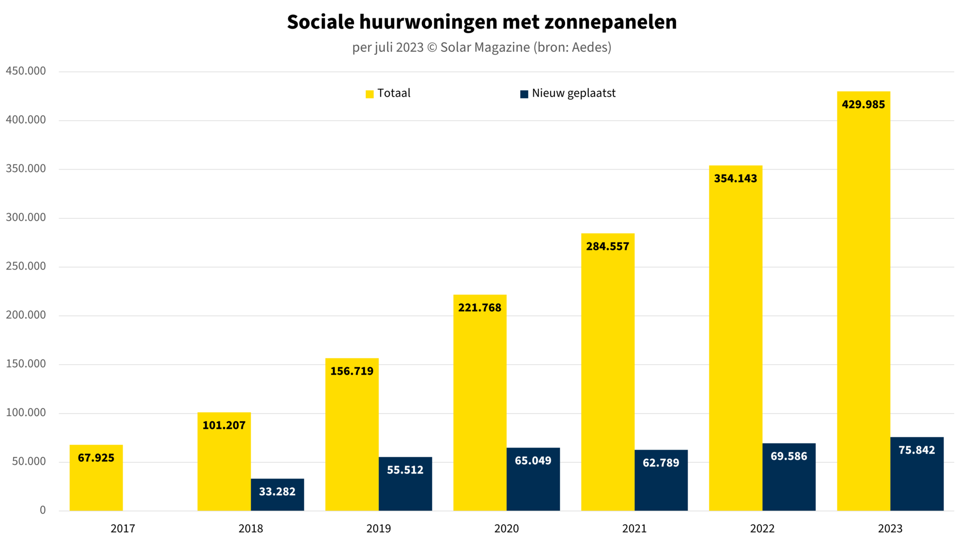 In de zomer van 2023 hadden bijna 430.000 sociale huurwoningen de beschikking over zonnepanelen, wat er 75.842 meer zijn dan het jaar daarvoor. Het oude recordjaar 2023 is daarmee verbroken.