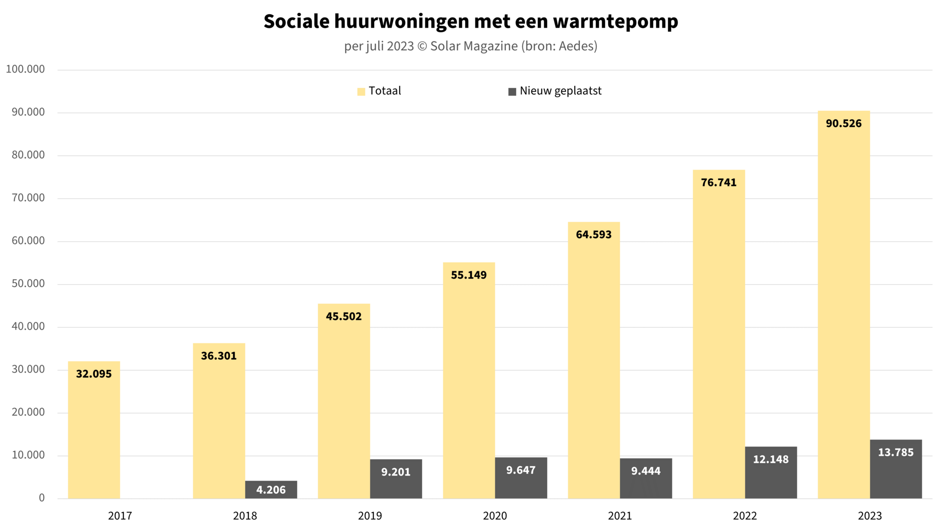 Het aantal sociale huurwoningen met een warmtepomp ligt bijna een factor 5 lager. Ruim 90.000 huurders hadden afgelopen zomer de beschikking over een warmtepomp. Er werden door de corporaties in een jaar tijd 13.785 warmtepompen geïnstalleerd.