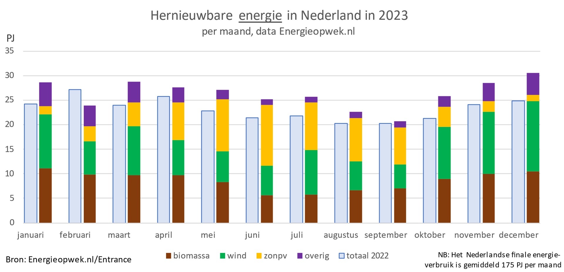 Het Planbureau voor de Leefomgeving (PBL) berekent dat dit in 2030 ongeveer uitkomt op 24 procent van het finale gebruik. Daarvan is dan 75 procent hernieuwbaar. In die berekening zit nog niet de aangekondigde extra 10 gigawatt aan windmolens op zee.