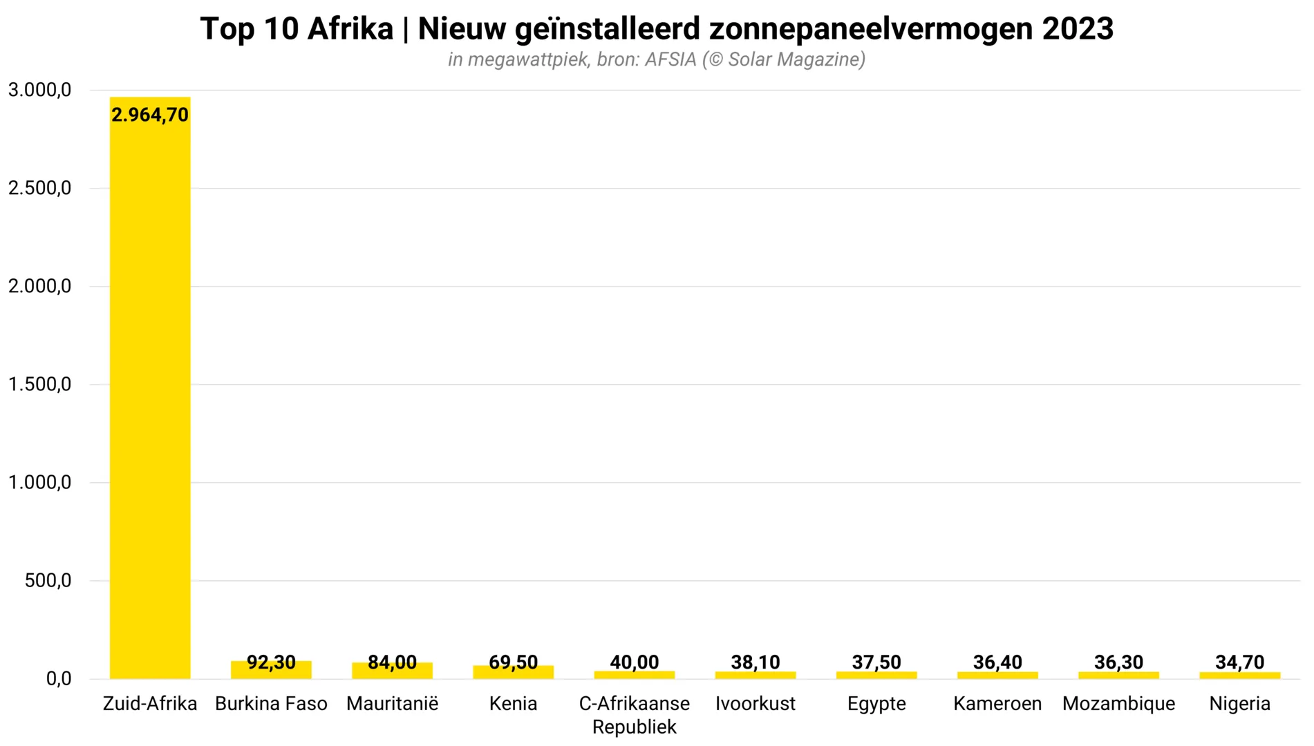 Brancheorganisatie Africa Solar Industry Association (AFSIA) meldt in haar Annual Solar Outlook dat Zuid-Afrika goed was voor maar liefst 79 procent van het vorig jaar geïnstalleerde vermogen.