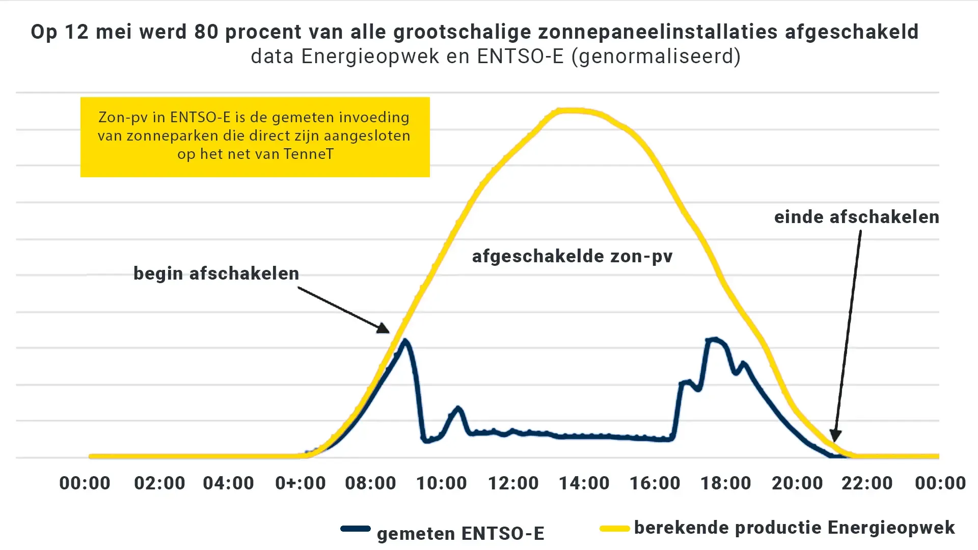 Het massaal afschakelen van zonneparken en wind op land en zee in grote volumes is niet nieuw. Negatieve stroomprijzen komen steeds vaker voor. Op die momenten blijven produceren, betekent financieel verlies. Wie de mogelijkheid heeft, levert dan dus niet terug aan het stroomnet. Dat gold dus ook op 12 mei. De stroomprijzen daalden onder 0, en wel 9 uur lang tot minus 20 eurocent per kilowattuur. Maar dat was niet waar Visser zich over verbaasde. ‘We kennen dit van voorgaande zomers, dit was echter wel heel vroeg in het jaar.’