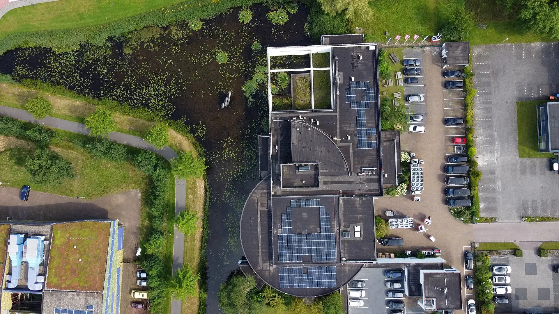 Solar-systemen.nl heeft op zijn beurt bij Kooi Camerabewaking in Drachten zonnepanelen in de vorm van een slot en een sleutel geïnstalleerd. ‘Nu is ook van bovenaf goed te zien dat hier een beveiligingsbedrijf is gevestigd’, zeggen Rutger Werkhoven van Kooi Camerabewerking en Werner Bergsma van Solar-systemen.nl.