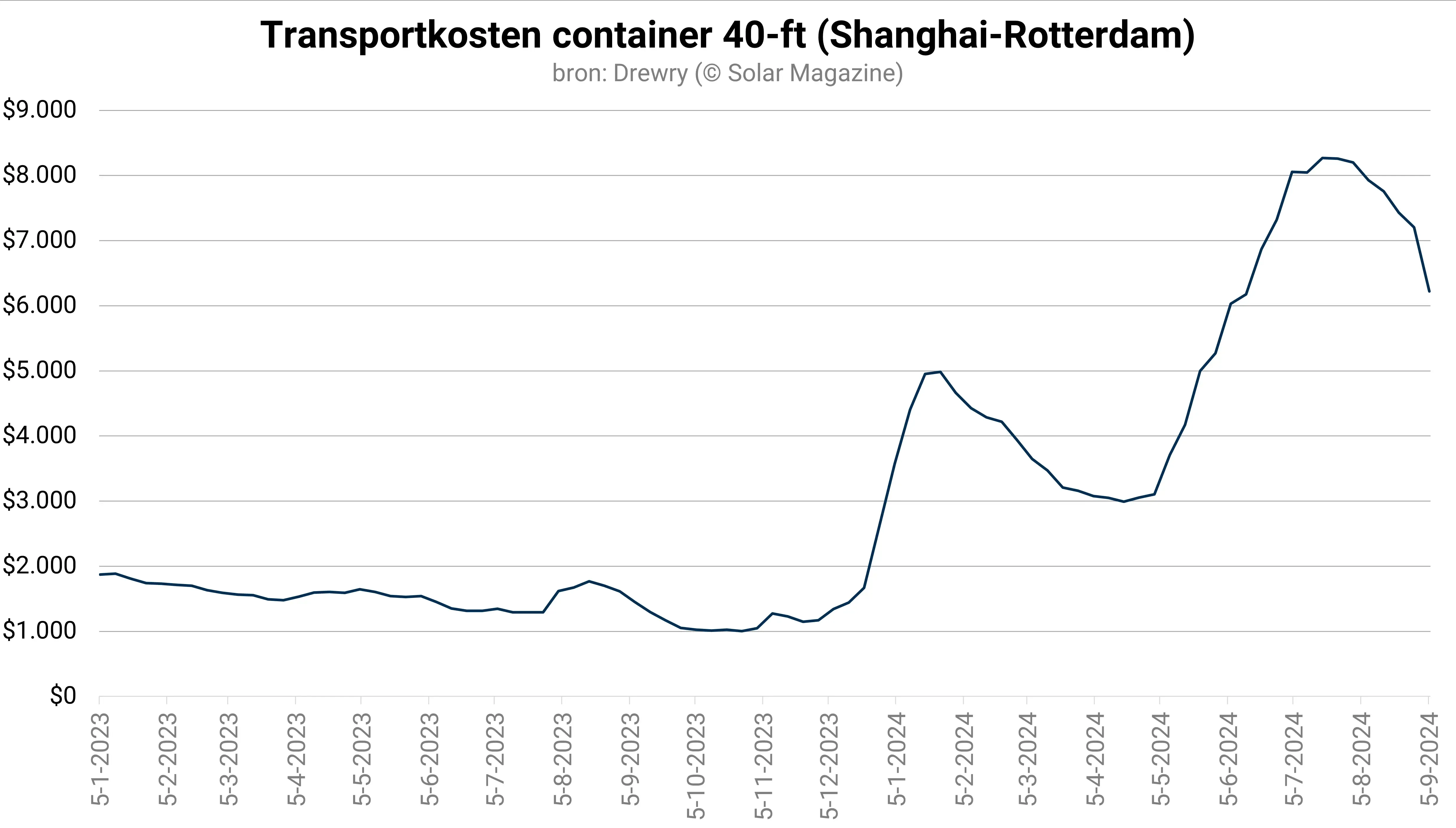 Sinds begin mei waren de transportkosten met ruim 5.000 Amerikaanse dollar gestegen tot ruimschoots boven de 8.000 Amerikaanse dollar. Maritiem marktonderzoeksbureau Drewry meldt dat de kosten de afgelopen weken op 6 van de 8 belangrijkste routes ter wereld zijn gedaald. De grootste prijsdaling deed zich voor op de route Shanghai-Rotterdam.