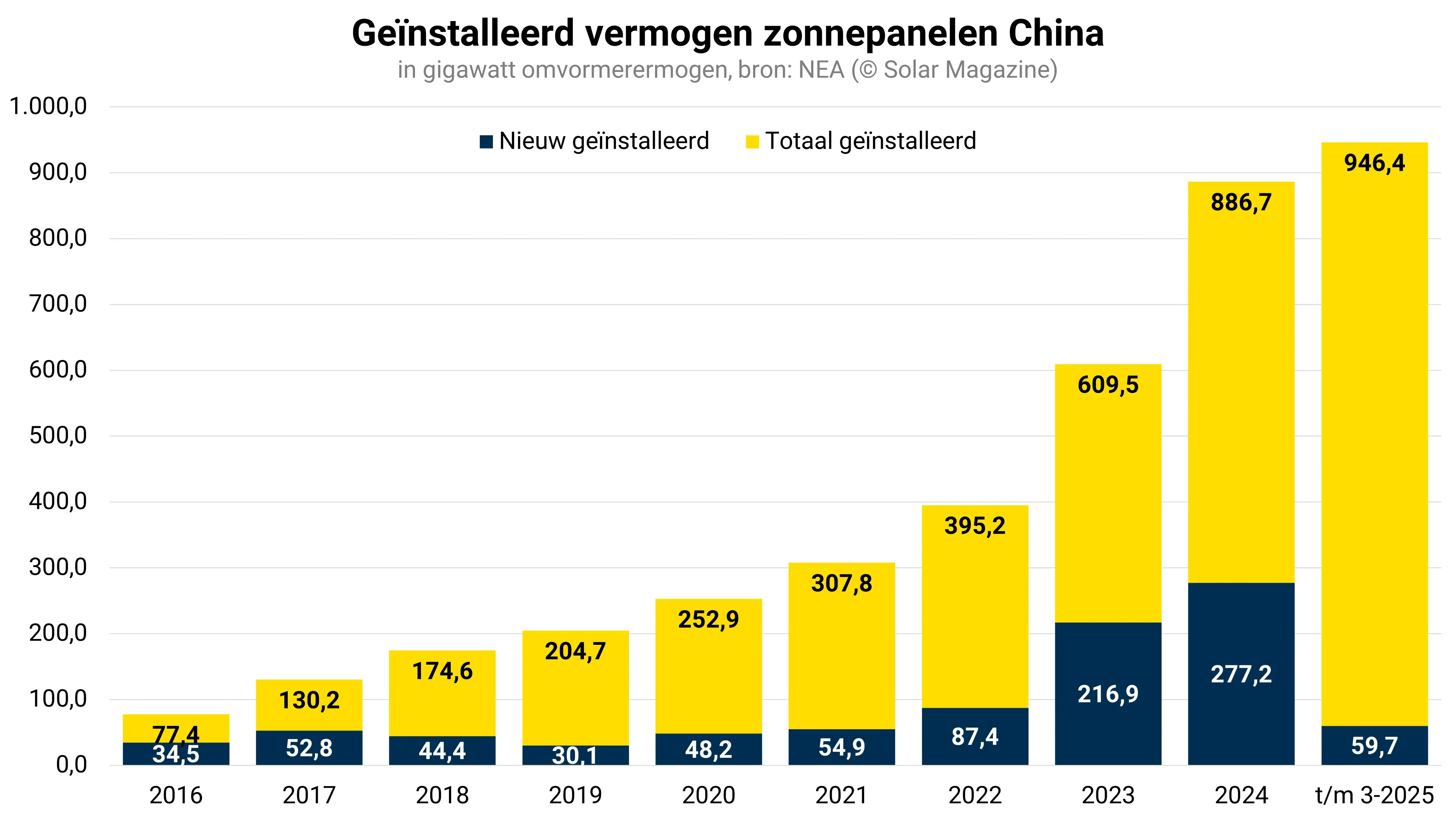 Deze groei van meer dan 30 procent ten opzichte van dezelfde periode vorig jaar brengt de totale geïnstalleerde pv-capaciteit van het land op 950 gigawatt.