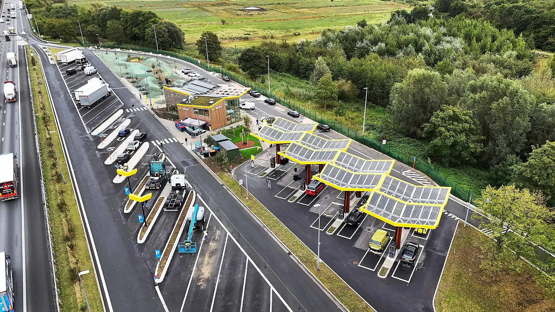 De nieuwe locaties vormen een totaalconcept dat verder gaat dan alleen laden. De locatie telt 16 snelladers van 400 kilowatt in een doorrij-opstelling onder de kenmerkende gele Solar Tree-daken. Daarnaast zijn er 4 snelladers specifiek ontworpen voor elektrische vrachtwagens, waarmee wordt ingespeeld op de groeiende behoefte aan laadinfrastructuur voor zwaar transport.