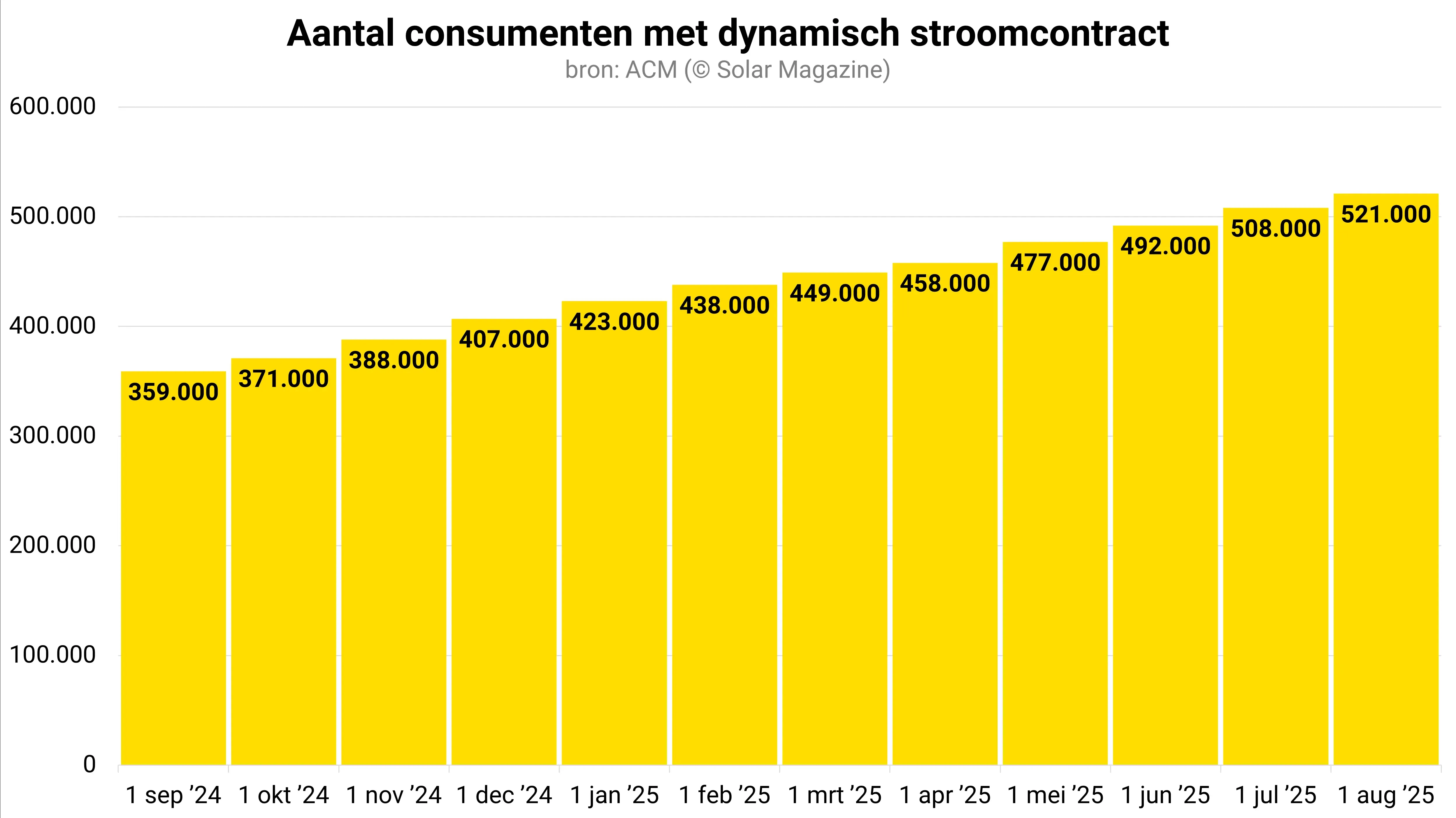 Het aantal consumenten met een dynamisch stroomcontract is volgens de waakhond dit jaar maandelijks met circa 14.000 stuks gegroeid.