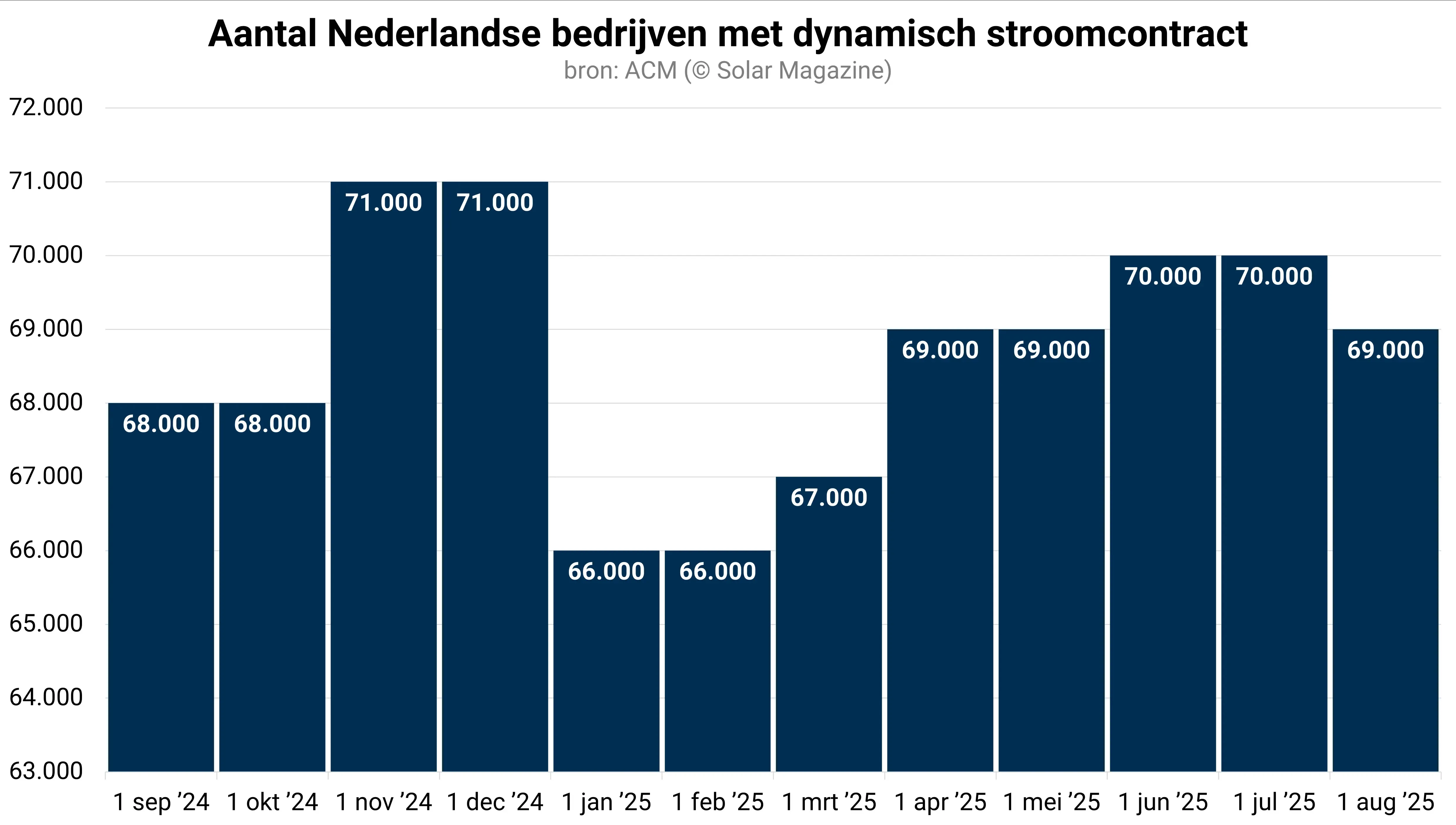 Het aantal kleinzakelijke bedrijven met een dynamisch stroomcontract is in de eerste jaarhelft gestabiliseerd rond de 70.000 stuks.