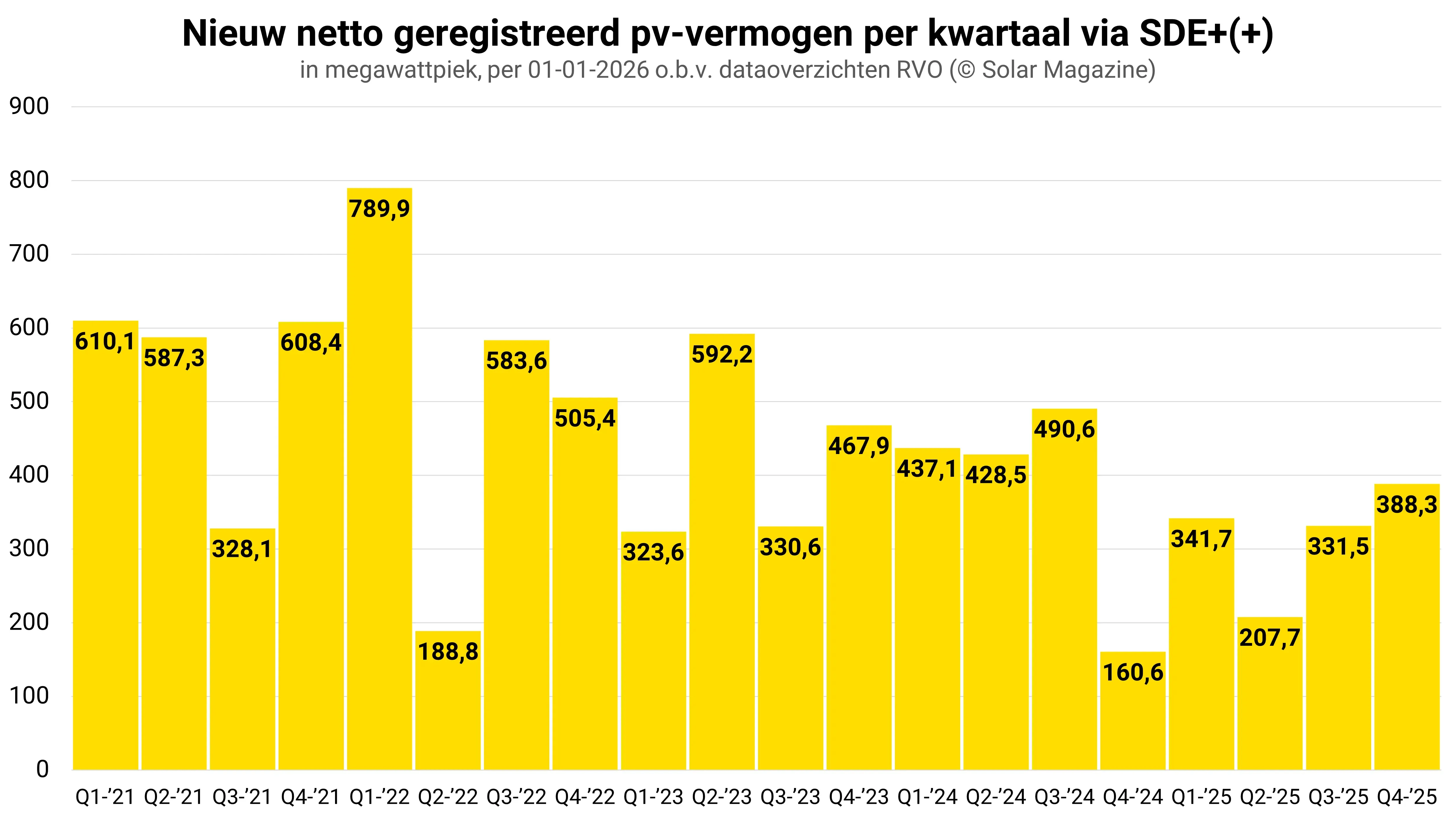 Qua netto geregistreerd vermogen is het vierde kwartaal van 2025 het beste van het kalenderjaar gebleken met een netto geregistreerd vermogen van 388,3 megawattpiek.