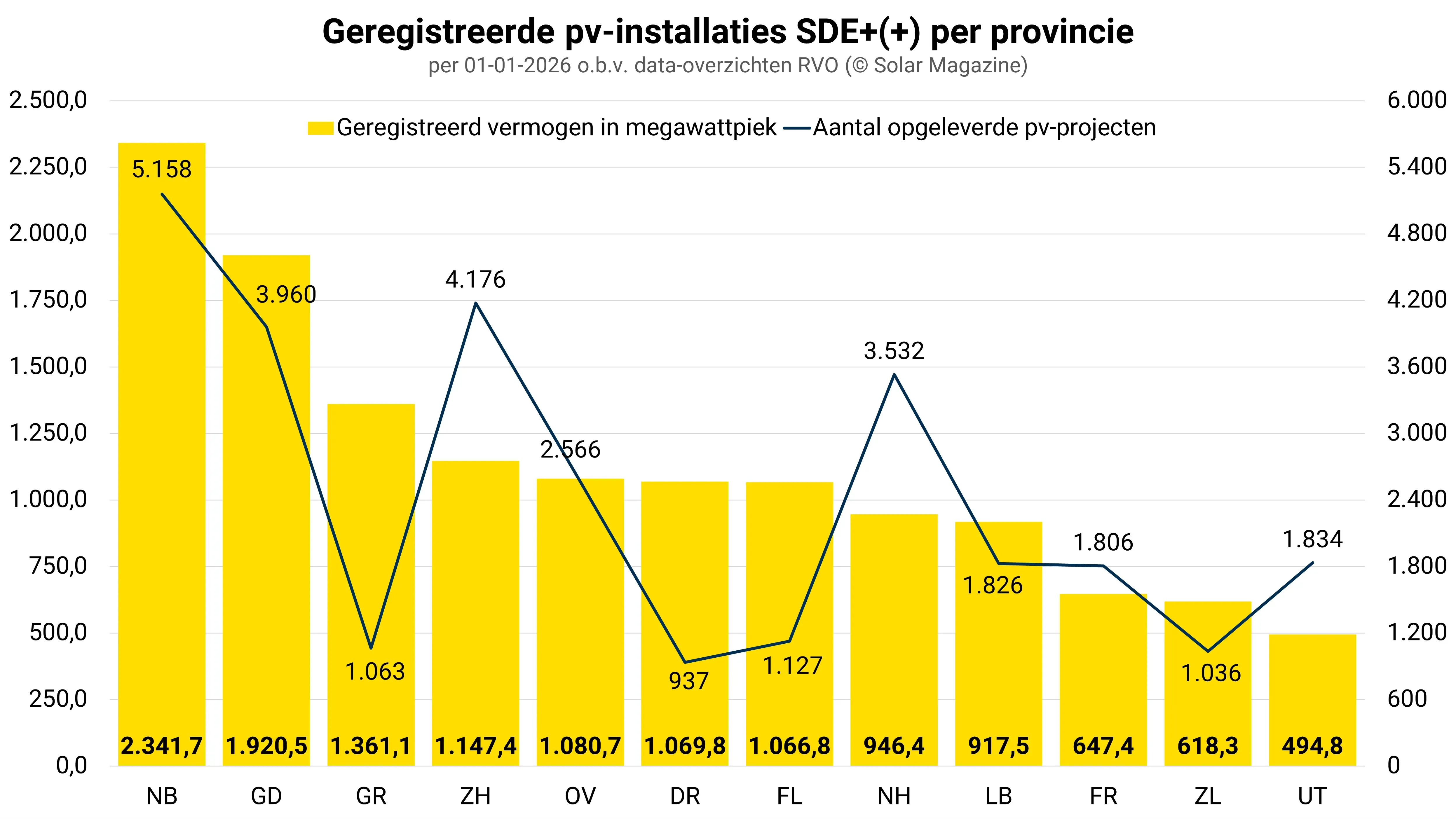 Onderstaande tabel bevat het aantal volgens RVO.nl al gerealiseerde projecten en het daarmee gemoeide volume. Daaruit wordt duidelijk dat ook RVO inmiddels ruim 12,3 gigawattpiek aan pv-projecten heeft geregistreerd die via de SDE+(+) gerealiseerd zijn.