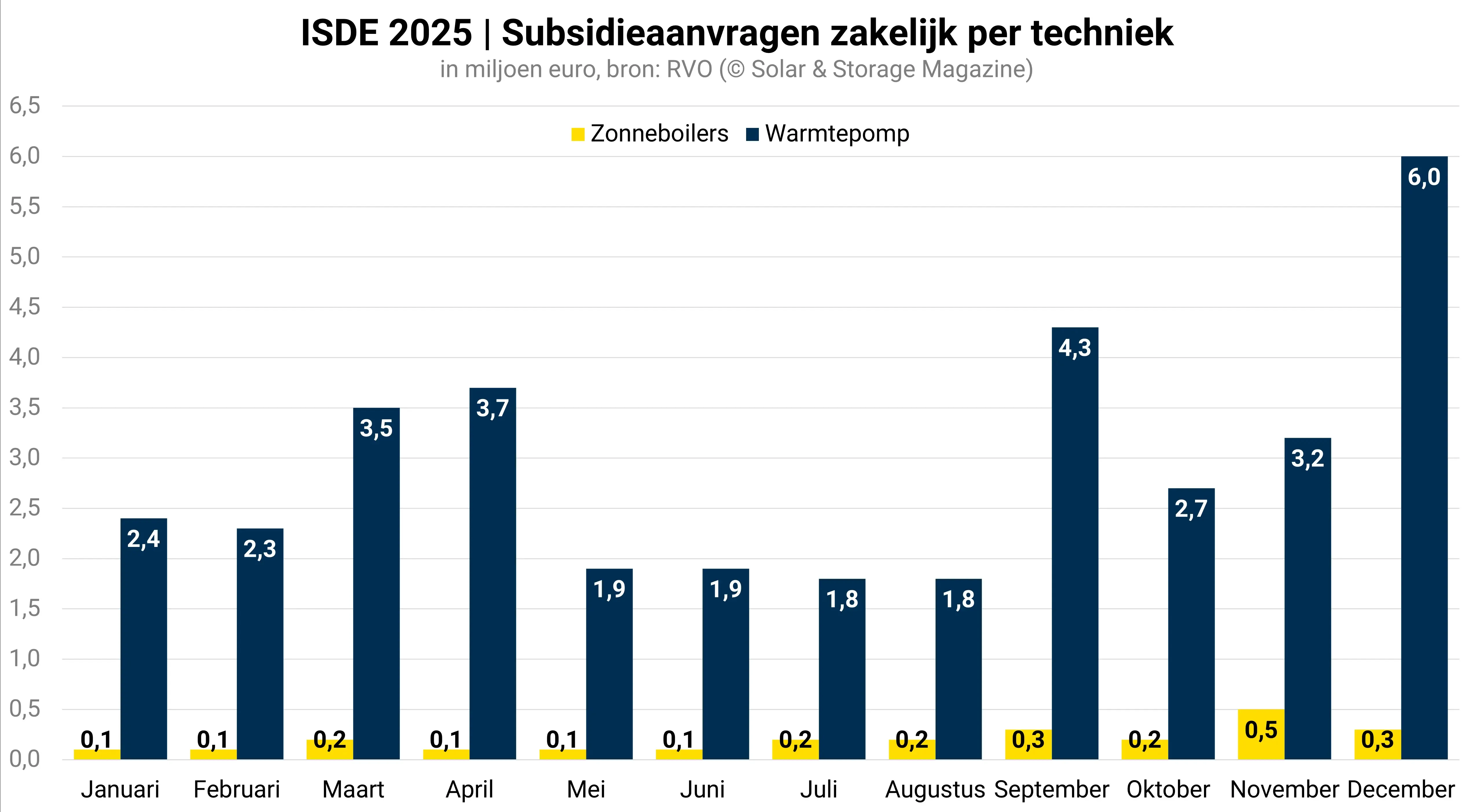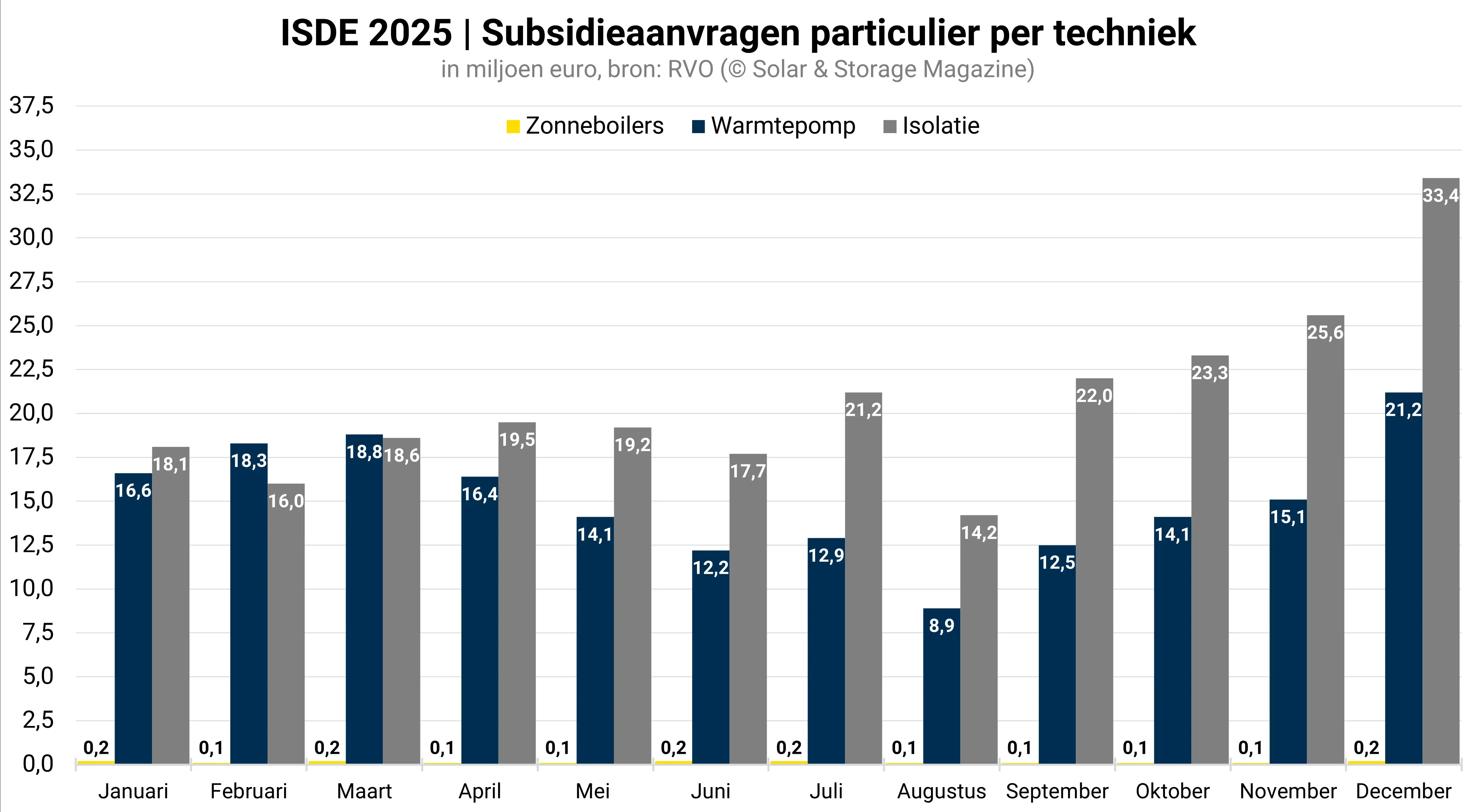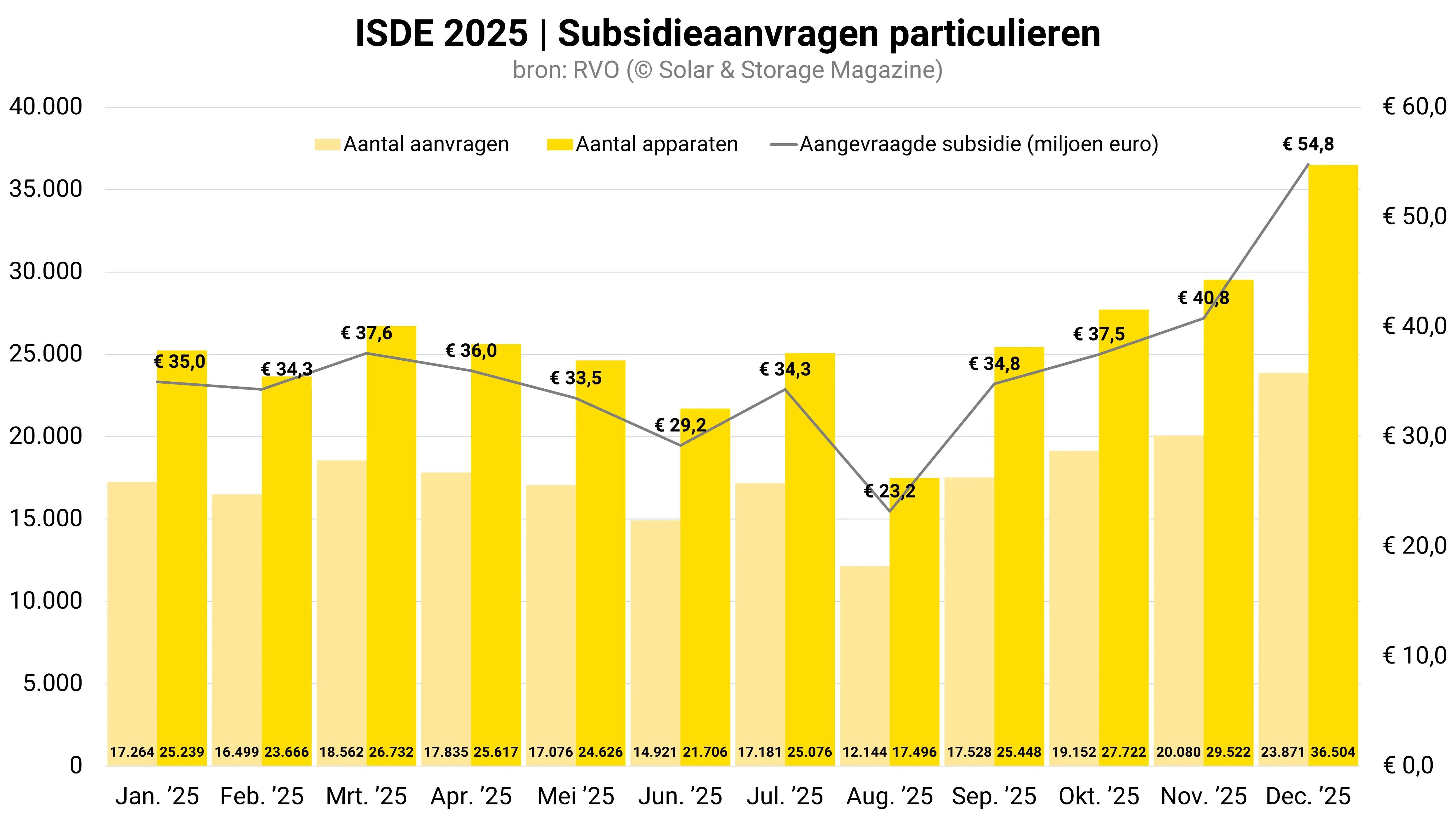 De wijzigende subsidievoorwaarden hebben ertoe geleid dat er in de maand december 2025 door consumenten werd 54,8 miljoen euro subsidie aangevraagd. In de geschiedenis van de subsidieregeling werd alleen in december 2023 en december 2024 meer subsidie aangevraagd. Toen ging het om respectievelijk 55,0 en 68,4 miljoen euro subsidie.