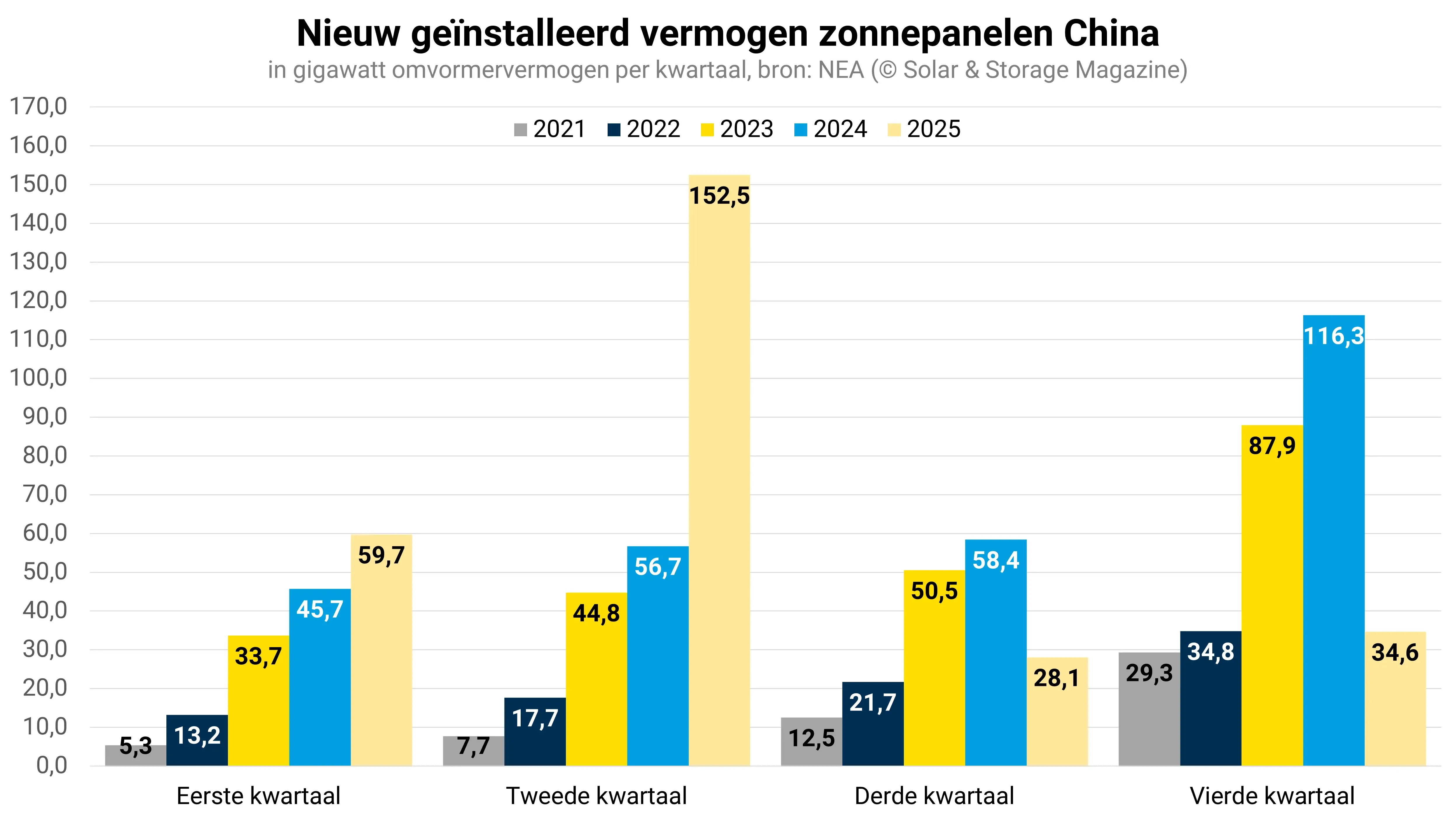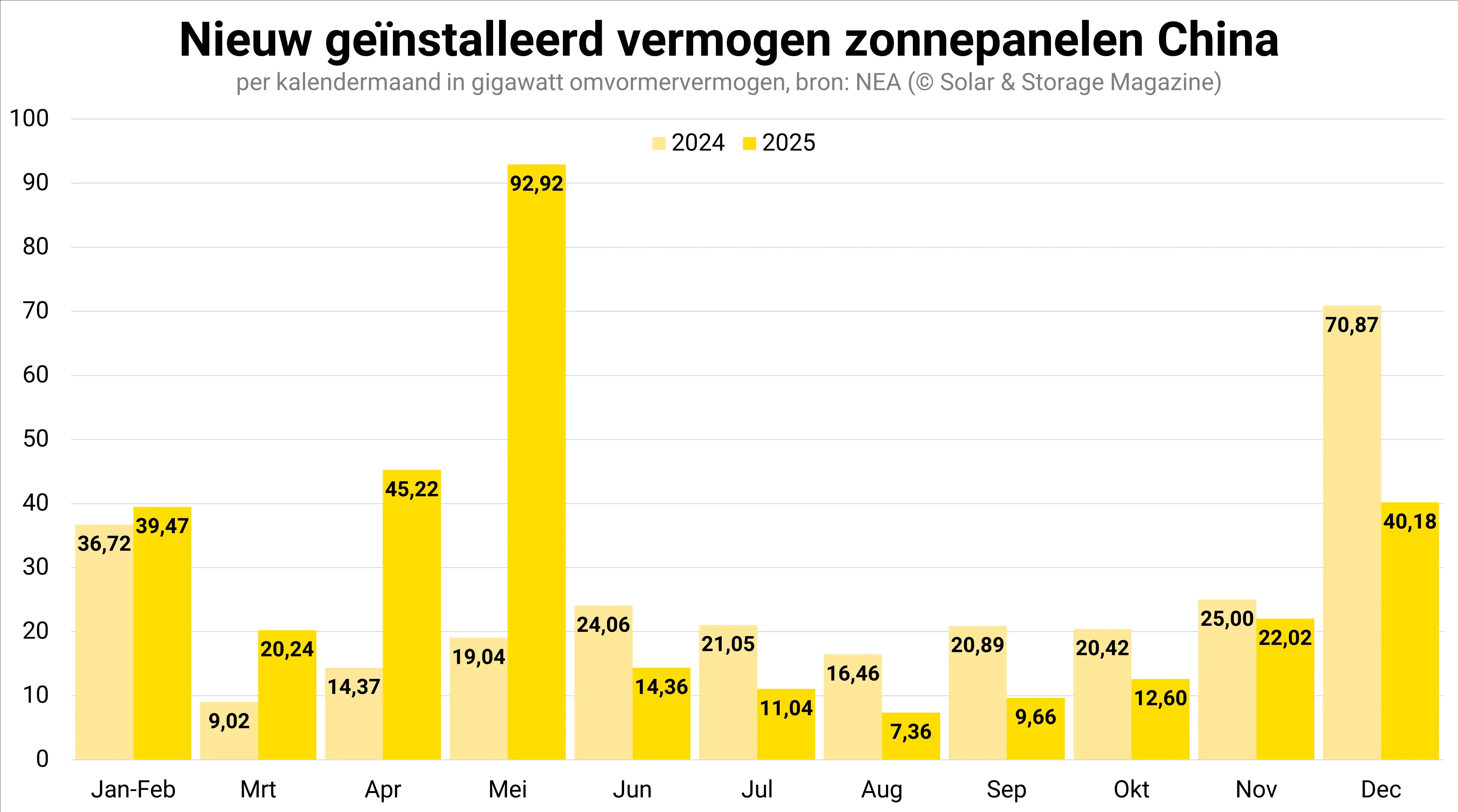 De groei verliep echter niet zonder hobbels. China installeerde in mei 2025 een recordhoeveelheid van 92,92 gigawatt omvormervermogen in 1 maand. Dit kwam doordat projectontwikkelaars hun installaties wilden afronden voordat het land in juni overstapte van een systeem met vaste inkooptarieven naar marktgebaseerde elektriciteitsprijzen.