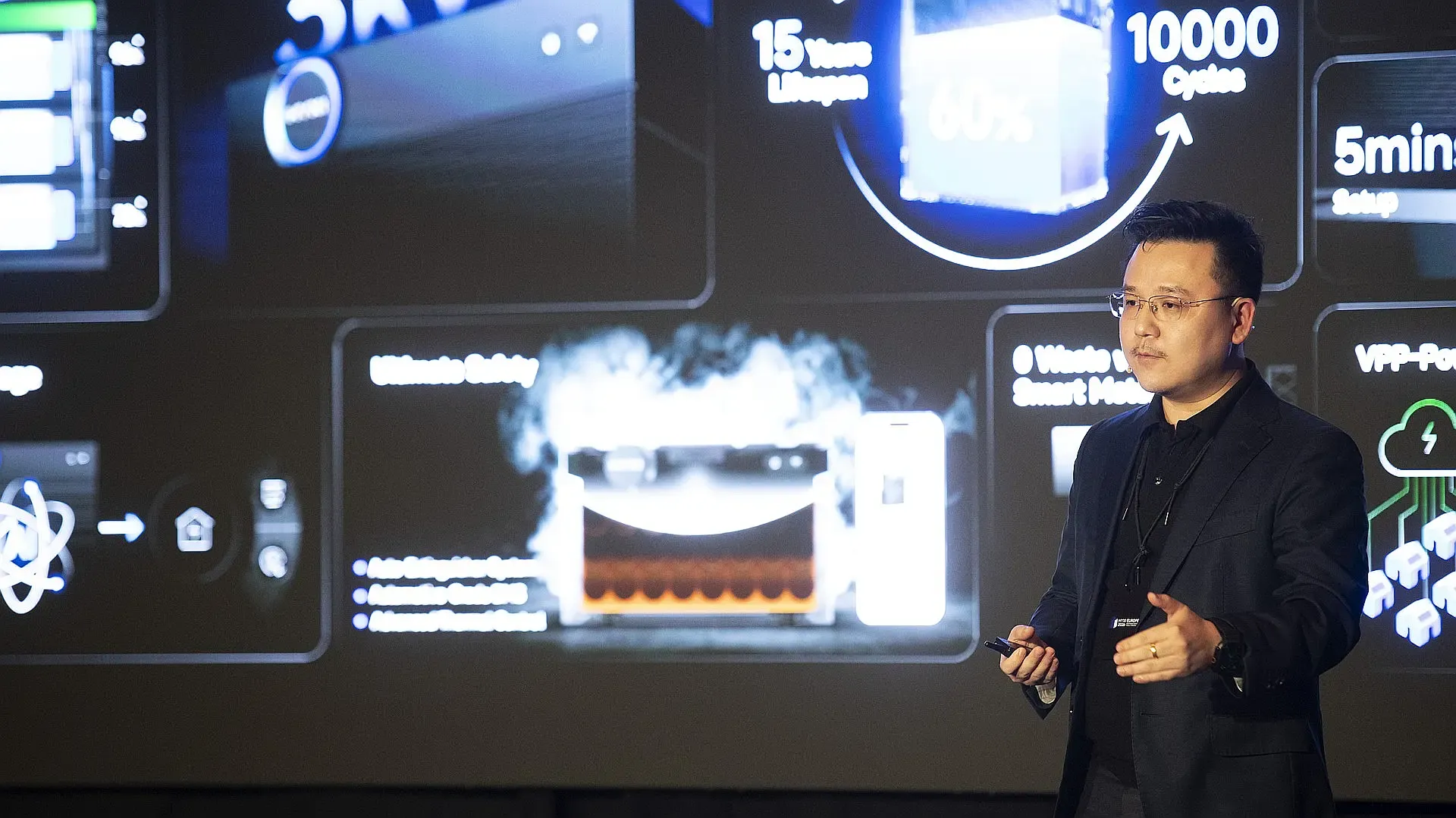 Yin onthulde dat HYXI in het tweede kwartaal in Europa een one-stop service center opent dat onder meer bestaat uit een trainingscentrum, callcenter en Return Authorization-centrum. De presentatie van Yin stond echter vooral in het teken van de onthulling van 3 nieuwe producten: de plug-inbatterij HYXI Halo, de c&i-batterij HYXI Atlas en de nieuwe app HYXI Cloud.