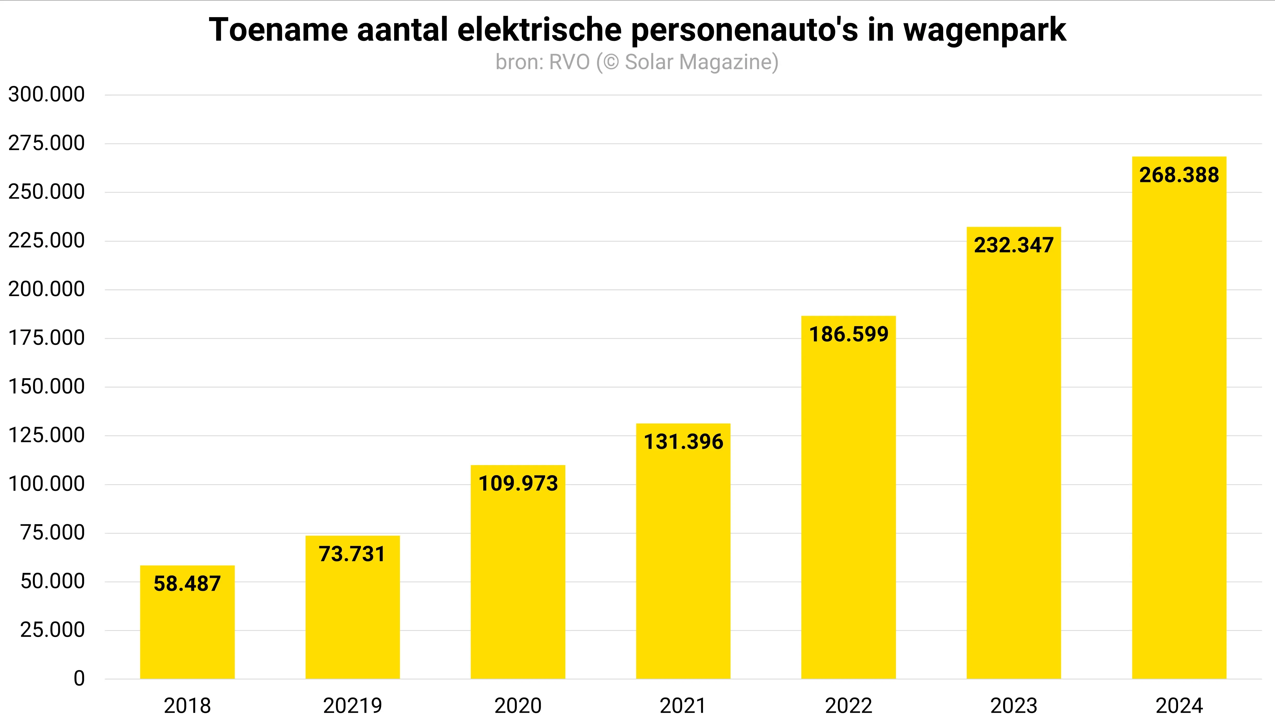 De verkoop van elektrische auto’s – plug-inhybride en volledige elektrisch – groeide vorig jaar namelijk nog met 15,5 procent naar een recordniveau van 268.388 exemplaren.