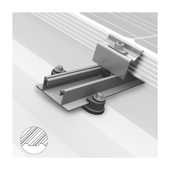 • Het beproefde lange railsysteem voor trapeziumvormige plaatmetalen toepassingen en zwevende montage met gecontroleerde thermische lineaire uitzetting