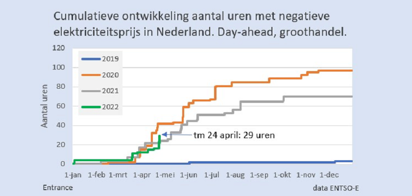 ‘De langdurig negatieve elektriciteitsprijs is een teken dat er te veel productie is, of te weinig vraag en export’, duidt Martien Visser, lector Energietransitie aan de Hanzehogeschool Groningen. ‘Voorlopig zijn dit uitzonderingen, maar de komende jaren gaat dit evenwel steeds vaker voorkomen.’